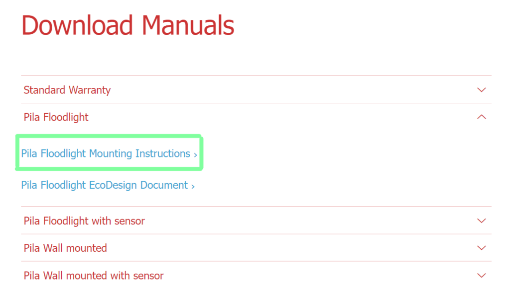 Installation instructions for PILA products can be found under Manuals on the PILA website.